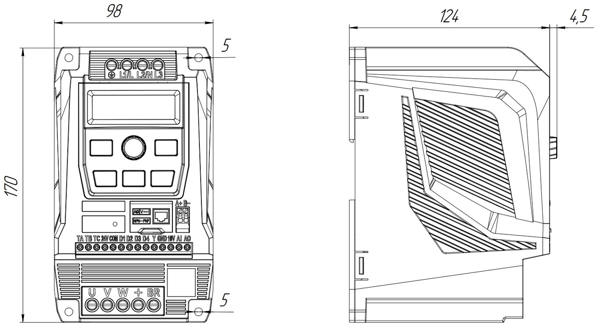 | Габариты, мм | 98x170x124 |
