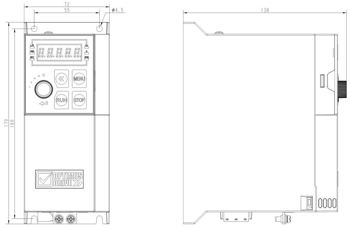 | Режимы управления | Скалярный (V/F), векторный без ОС (SVC) |