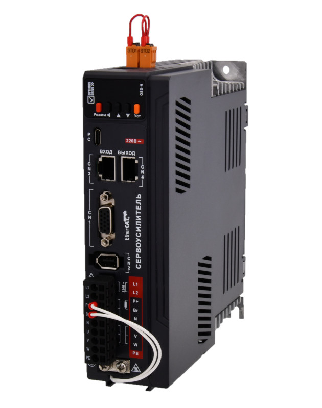 Сервоусилители серии OSD-H позволяют осуществлять управления движением для различных применений. Сервоусилитель обеспечивает высокую точность и повторяемость позиционирования, а также стабильное поддержание заданной скорости или момента на валу, что может быть использовано в различных ответственных применениях. Сервоусилители серии OSD-H поддерживают управление посредством коммуникационного протокола EtherCAT. Имеет на борту вход STO для подключения к системам промышленной безопасности, чтобы обеспечивать отключение генерации напряжения на аппаратном уровне. Так же сервоусилитель серии OSD-H-*-E имеет на борту импульсные выходы для передачи текущих показаний энкодера в виде дифференциального импульсного сигнала 5В с фазами A,B,Z. Система управления сервоусилителя также имеет ряд специальный прикладных функций: