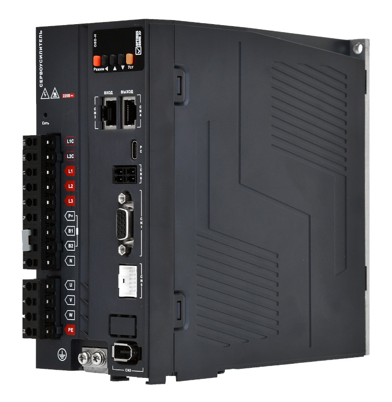 Сервоусилители серии OSD-H позволяют осуществлять управления движением для различных применений. Сервоусилитель обеспечивает высокую точность и повторяемость позиционирования, а также стабильное поддержание заданной скорости или момента на валу, что может быть использовано в различных ответственных применениях. Сервоусилители серии OSD-H поддерживают управление посредством коммуникационного протокола EtherCAT. Имеет на борту вход STO для подключения к системам промышленной безопасности, чтобы обеспечивать отключение генерации напряжения на аппаратном уровне. Так же сервоусилитель серии OSD-H-*-E имеет на борту импульсные выходы для передачи текущих показаний энкодера в виде дифференциального импульсного сигнала 5В с фазами A,B,Z. Система управления сервоусилителя также имеет ряд специальный прикладных функций: